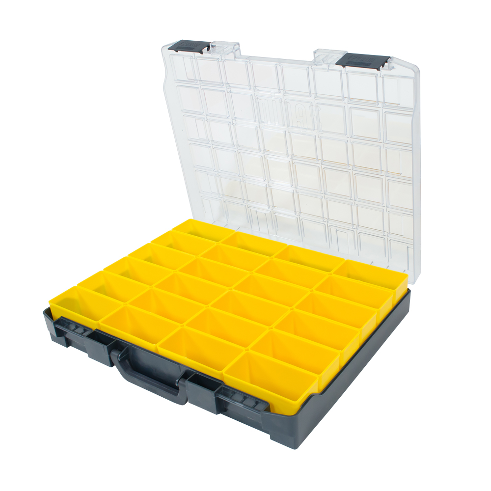 Kunststof assortimentskoffer incl. 24 inzetbakjes geel